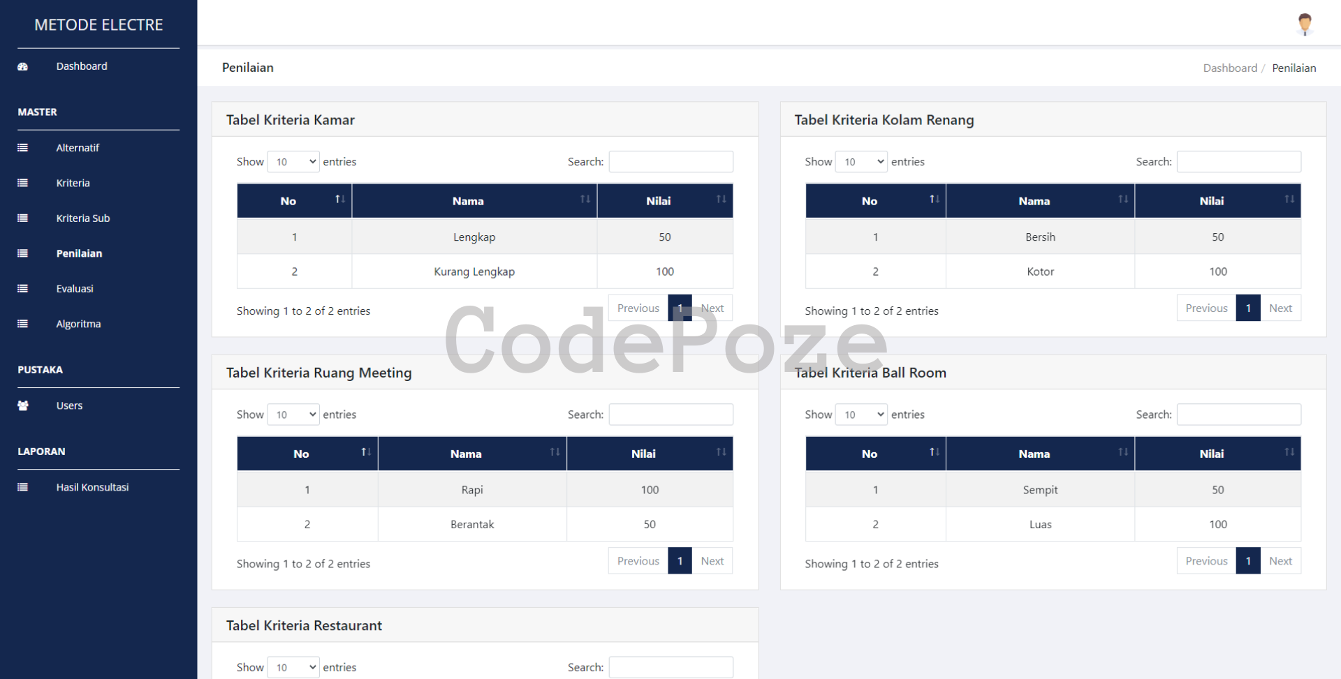 - Sub Kriteria