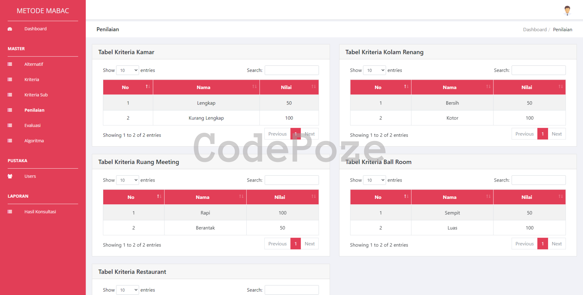 - Sub Kriteria